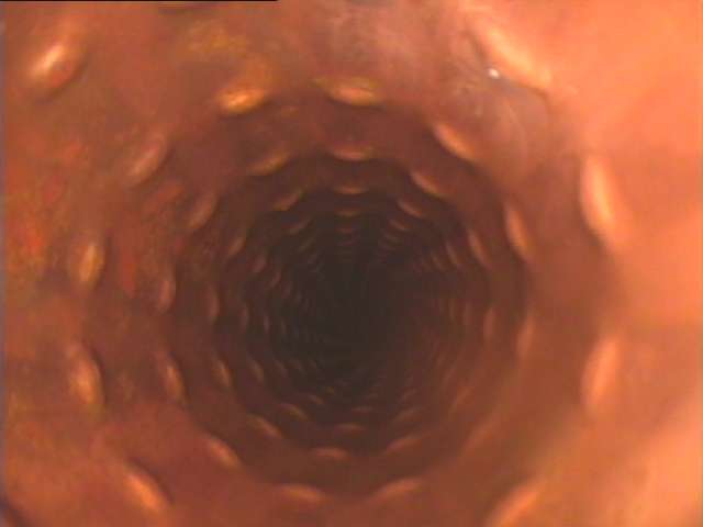 ▲ファイバースコープによるチューブ内 内視鏡確認