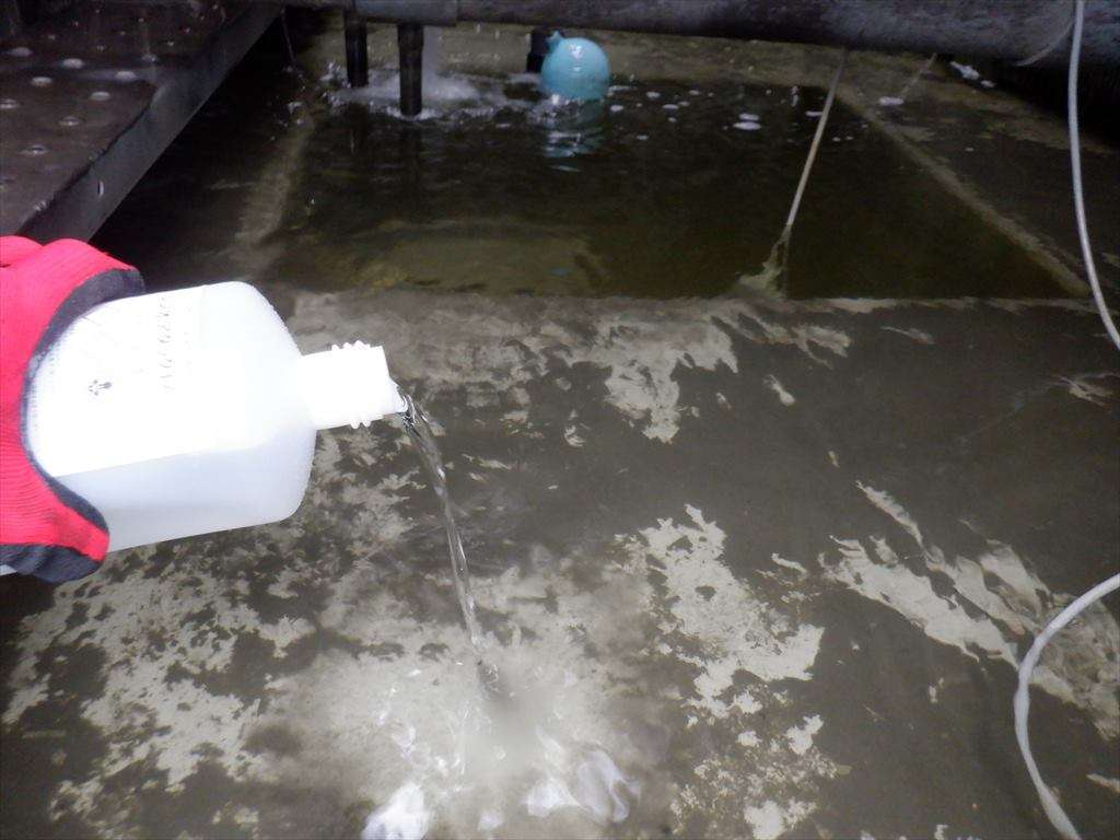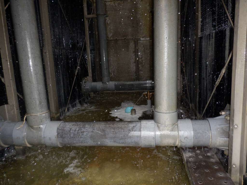 今回は運転中の冷却塔なので、薬品を投入しそのまま運転となりました。